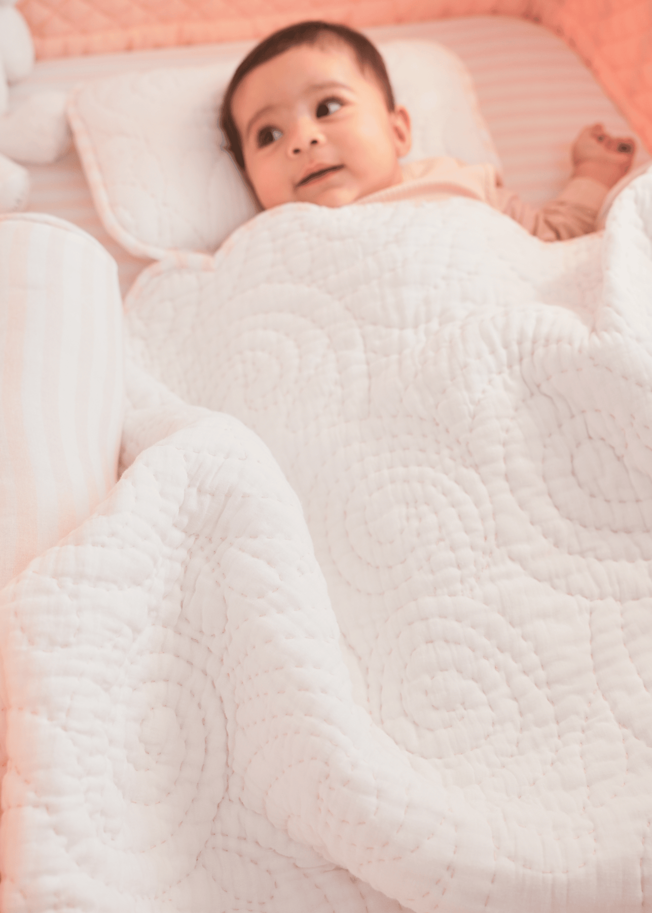 تتناسب هذه البطانية الرائعة بسلاسة مع كل موضوعات غرف الأطفال. تم الانتهاء منها بشكل جميل مع حواف وردية وبيضاء مزخرفة.