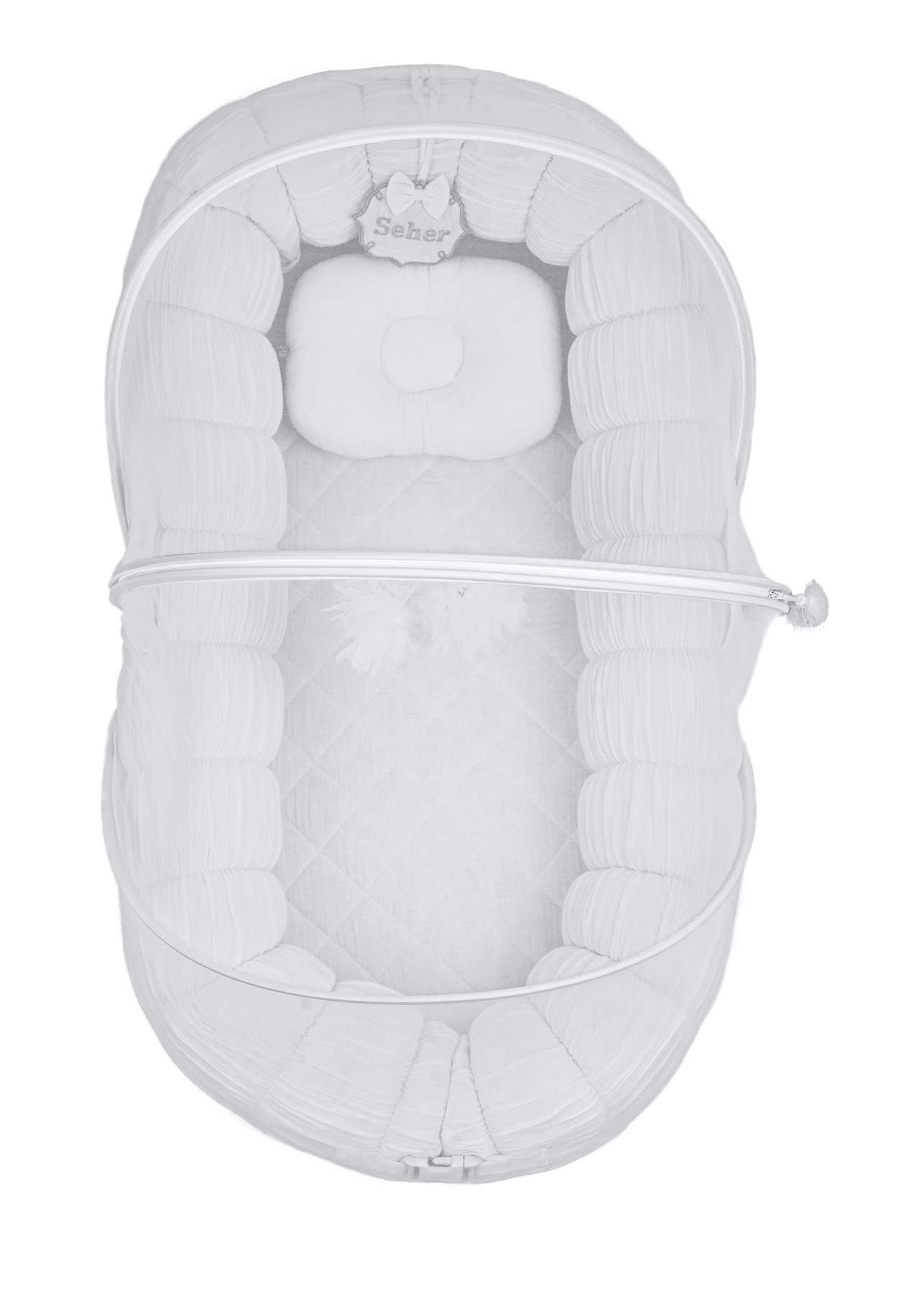 تأتي السحابة مع ناموسية مدمجة خاصة بها، وتعليقة من التول المزين بالخرز، ووسادة على شكل دونات. وبطاقة اسم شخصية، و