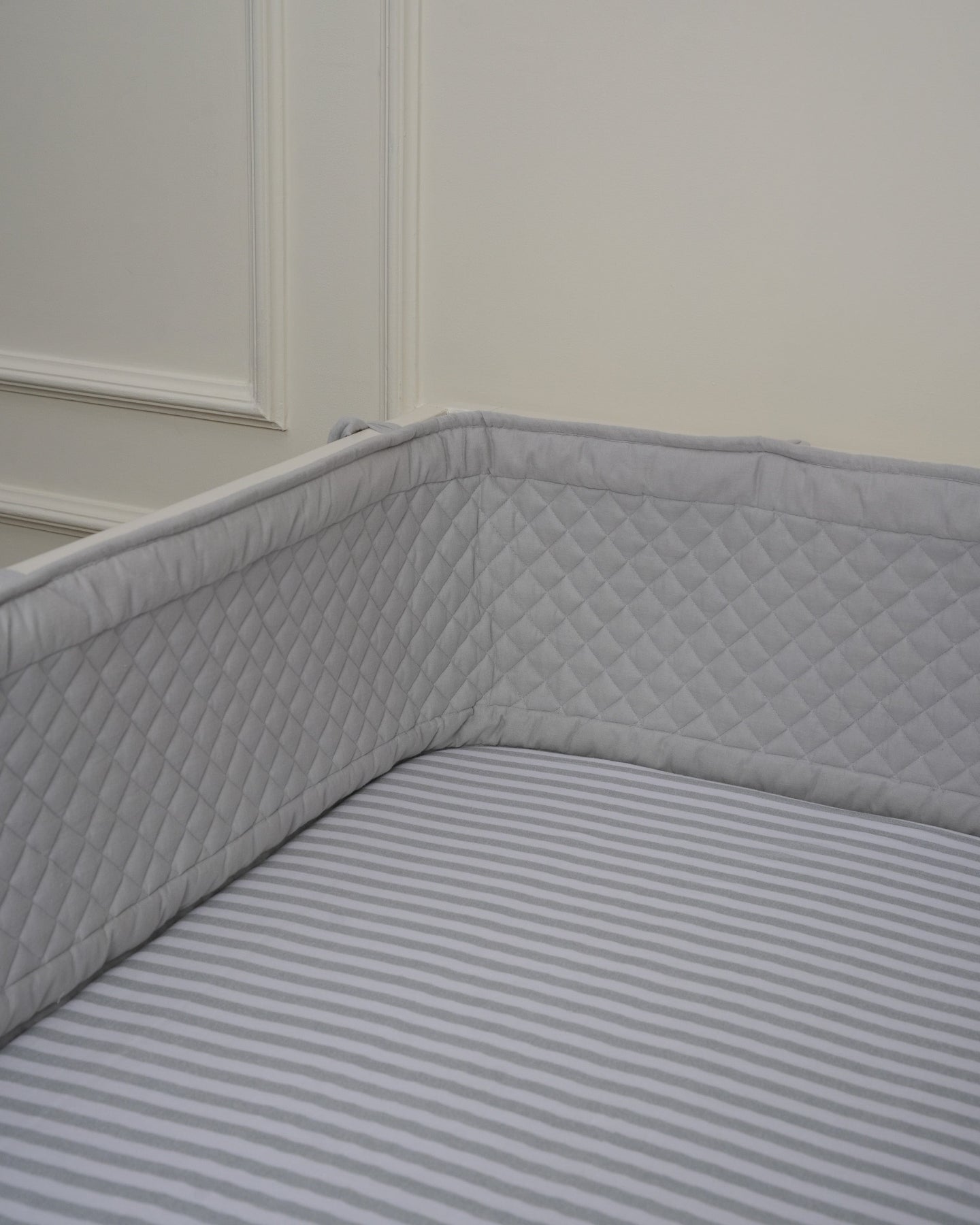 إن لوحة الألوان الرمادية الناعمة والمحايدة تجعلها مثالية لغرفة أطفال محايدة بين الجنسين.