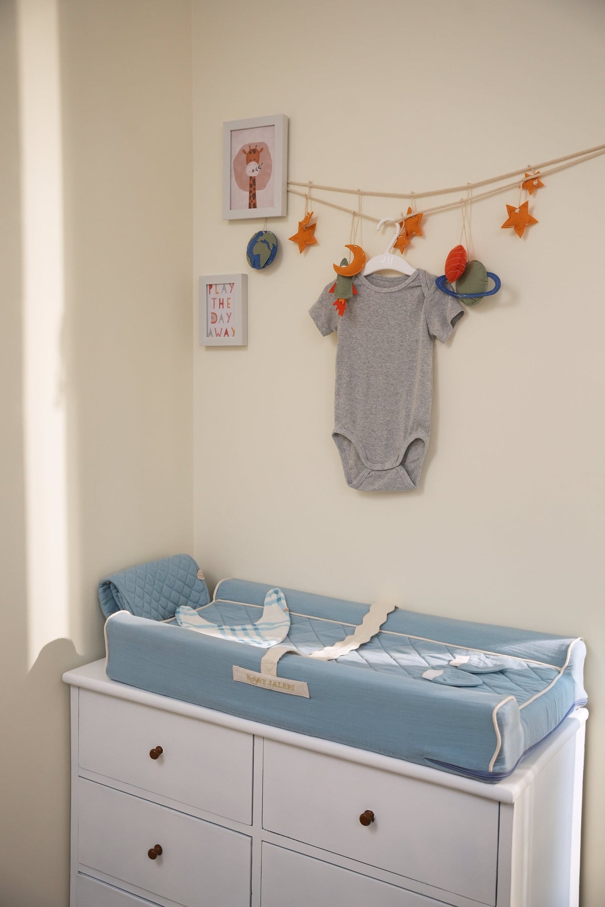 تم تصميم محطة تغيير الحفاضات الخاصة بنا مع وضع التطبيق العملي والراحة في الاعتبار، وتتميز بسطح مخملي مبطن يضمن راحة طفلك مع توفير مكان صحي وآمن لتغيير الحفاضات.