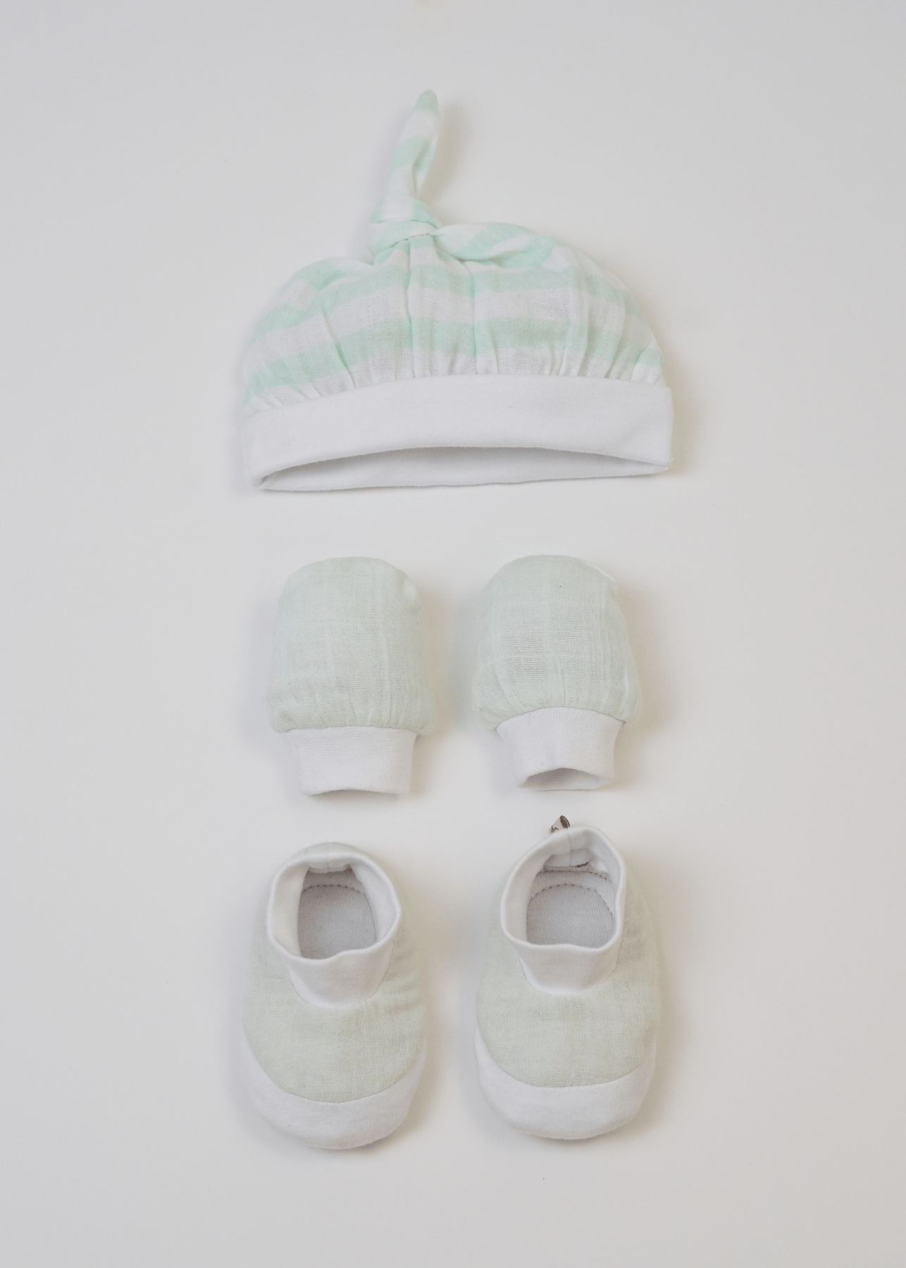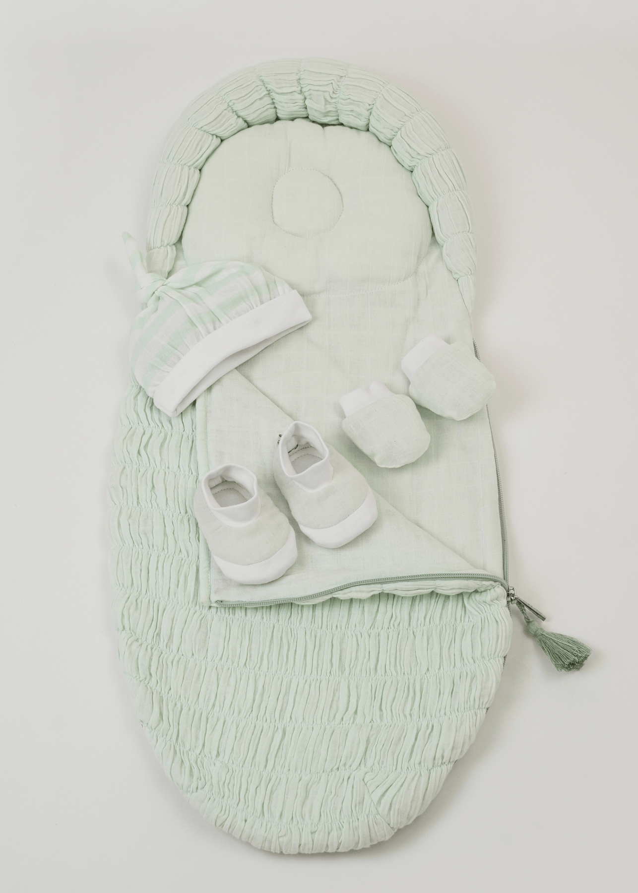 حقيبة النوم الهلالية الجميلة بالإضافة إلى قبعة الأطفال حديثي الولادة والقفازات والأحذية هي مزيج رابح.