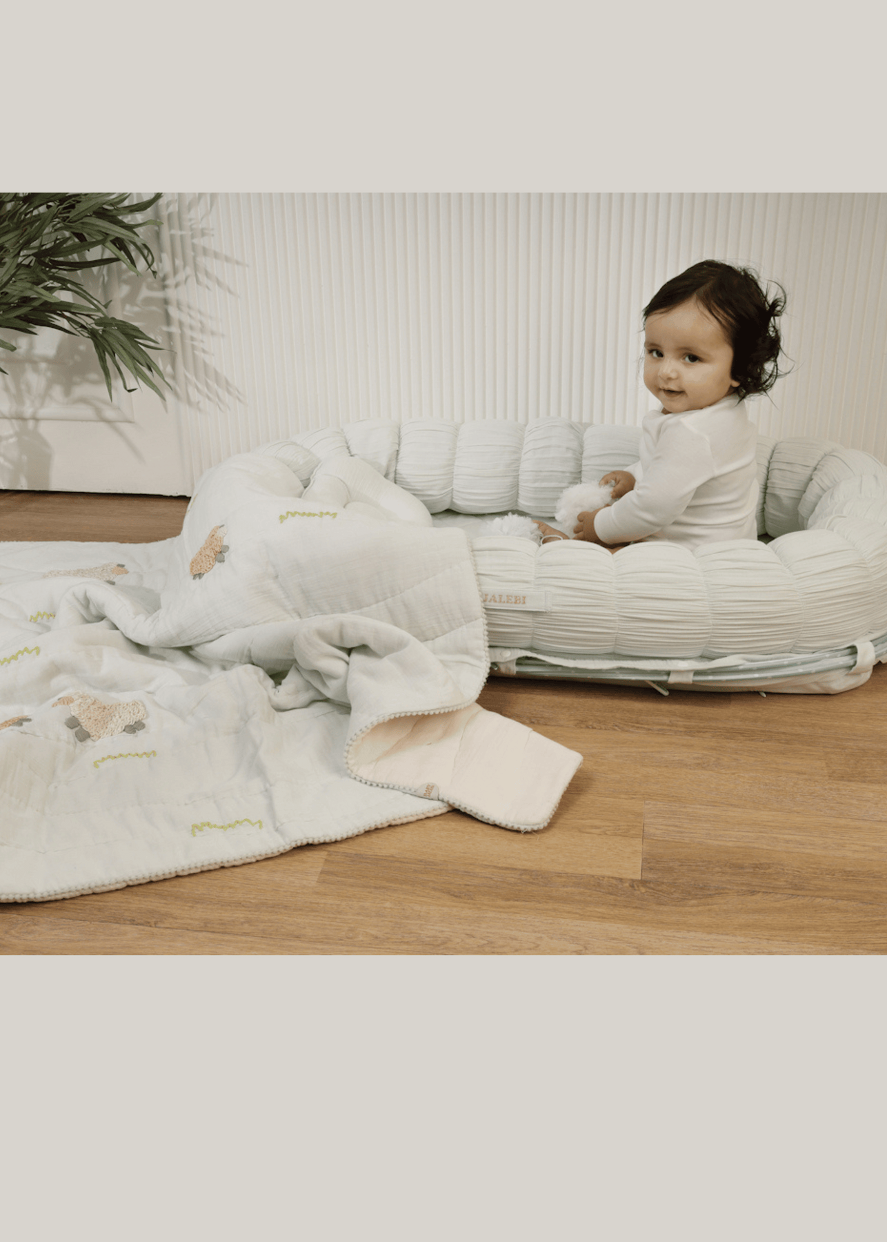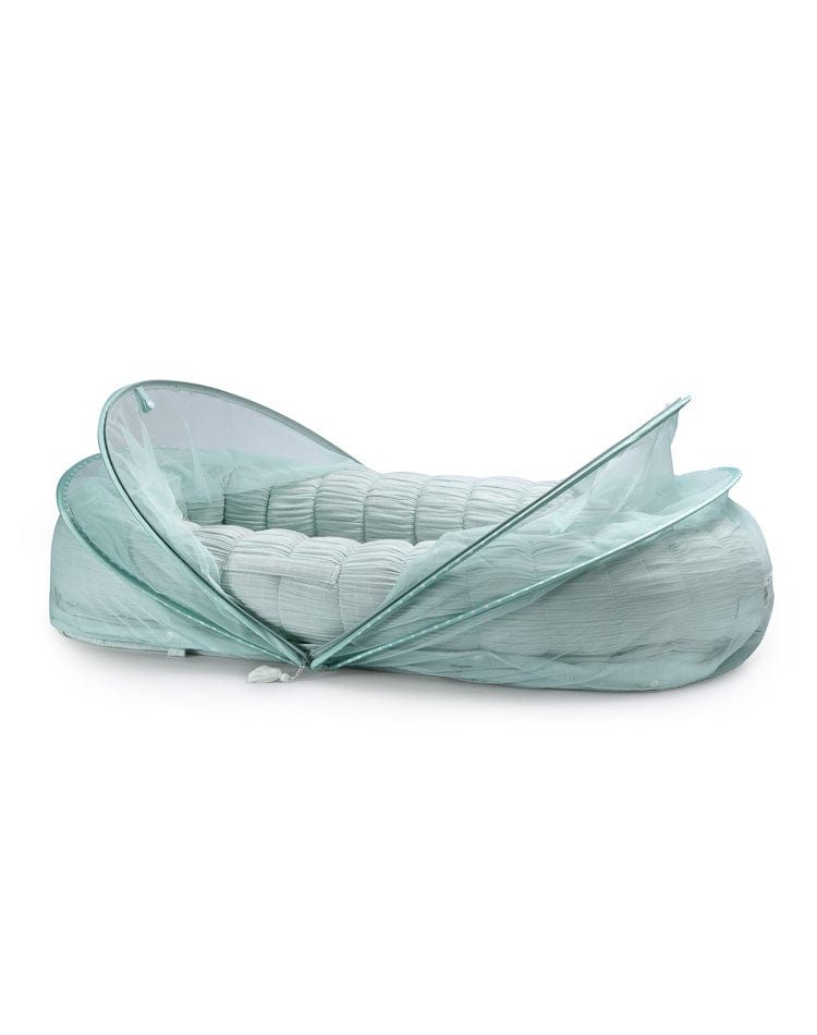 سحابة النوم - عالم ناعم وخفيف الوزن لعامك الأول مع طفلك. مصنوع من أجود أنواع الشاش القطني العضوي ومطوي بشكل مثالي بنمطنا المميز. متوفر بستة ألوان مهدئة، البيئة الناعمة والمحددة والمزخرفة لسحابة النوم تجعل المكان المثالي للطفل للنوم والقيلولة والحلم والاسترخاء واللعب. شبكة البعوض المدمجة تحمي طفلك في جميع الأوقات وغطاء التول ثنائي اللون الخاص بنا يضمن انشغال الطفل بينما تسرق تلك اللحظات الثمينة لنفسك.