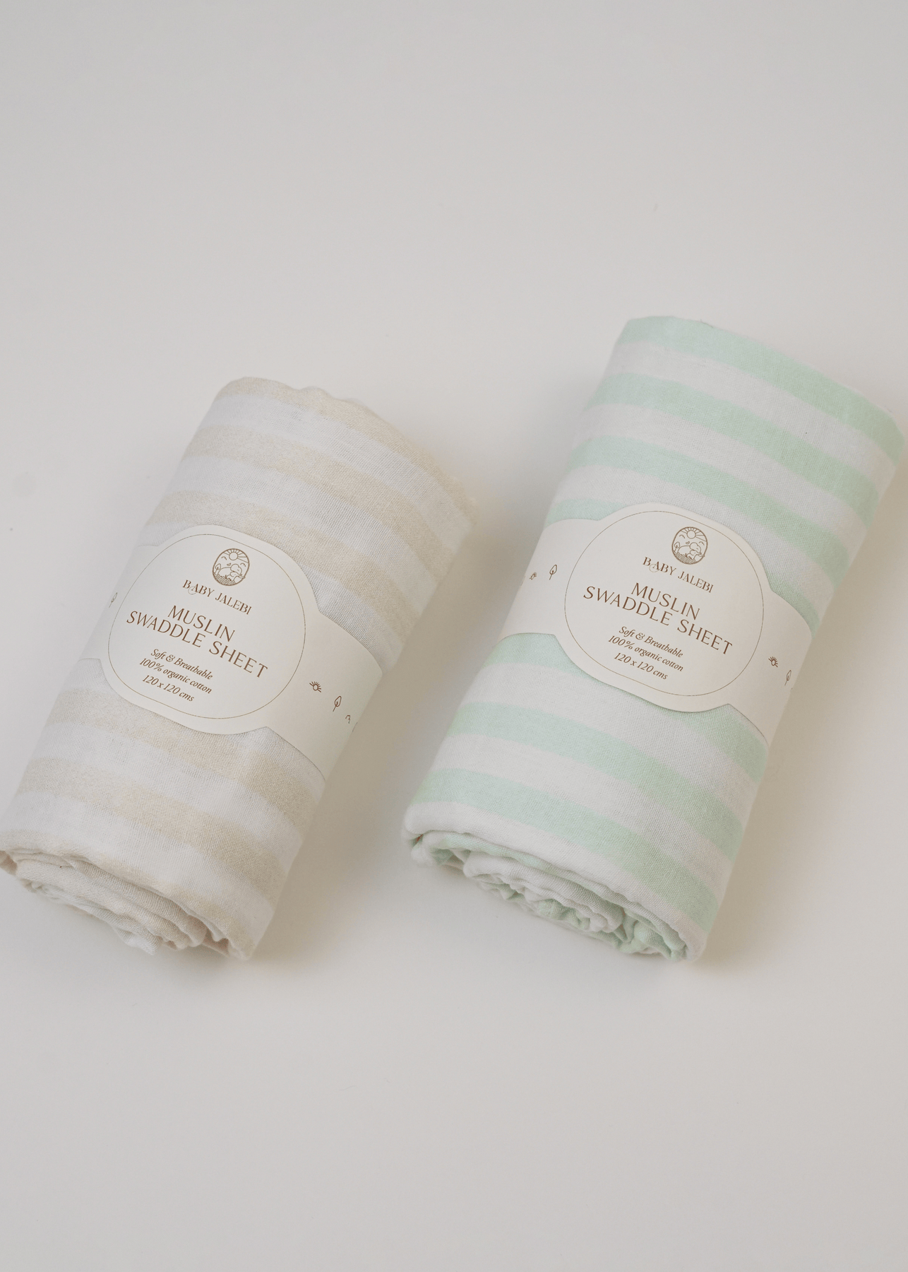 قماطات موسلين عضوية ناعمة وجيدة التهوية، مثالية للاستخدام منذ اليوم الأول.
