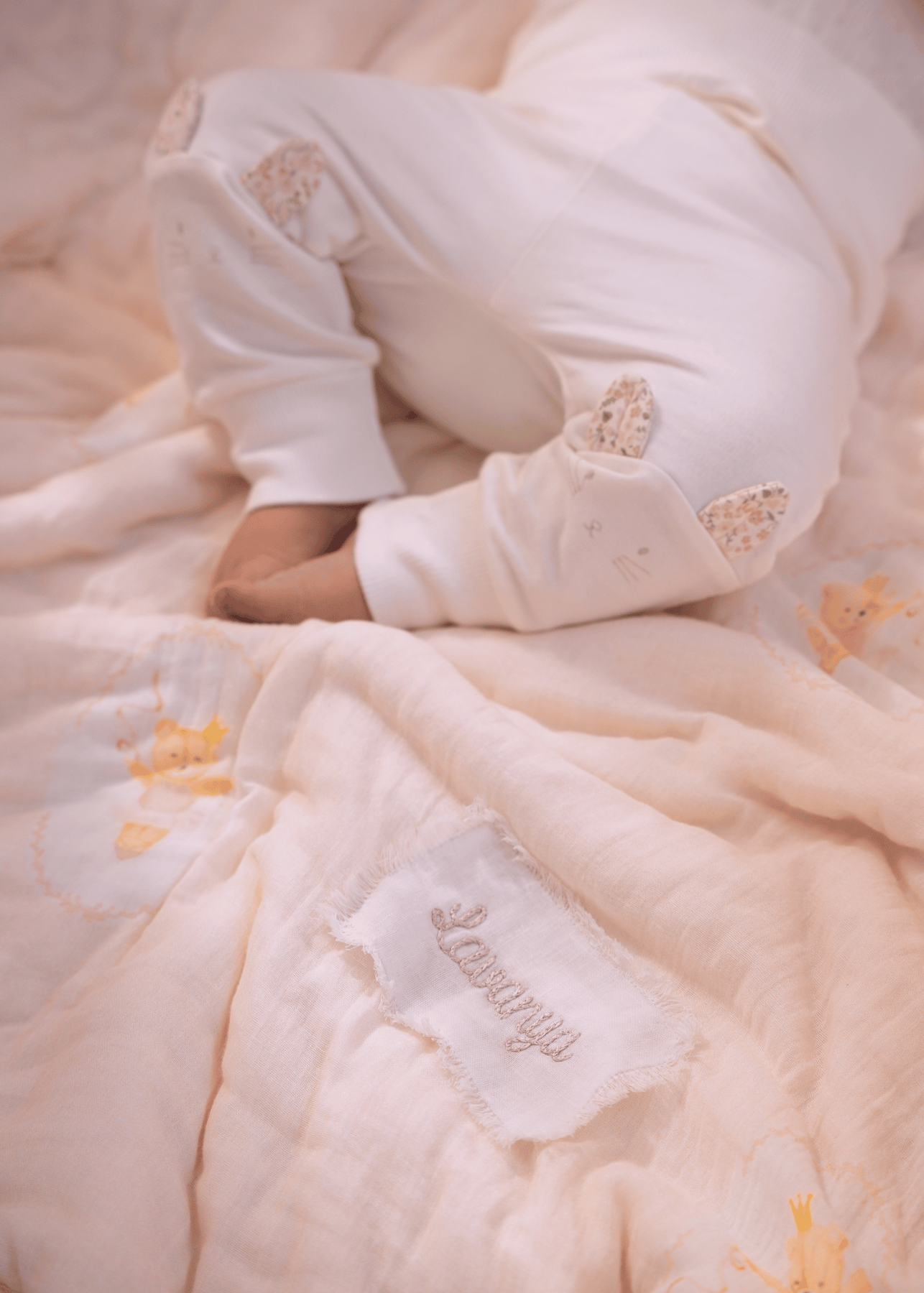 أغطية سرير أطفال عضوية مطرزة بشكل خاص، مصنوعة من الجلد النباتي ومبطنة