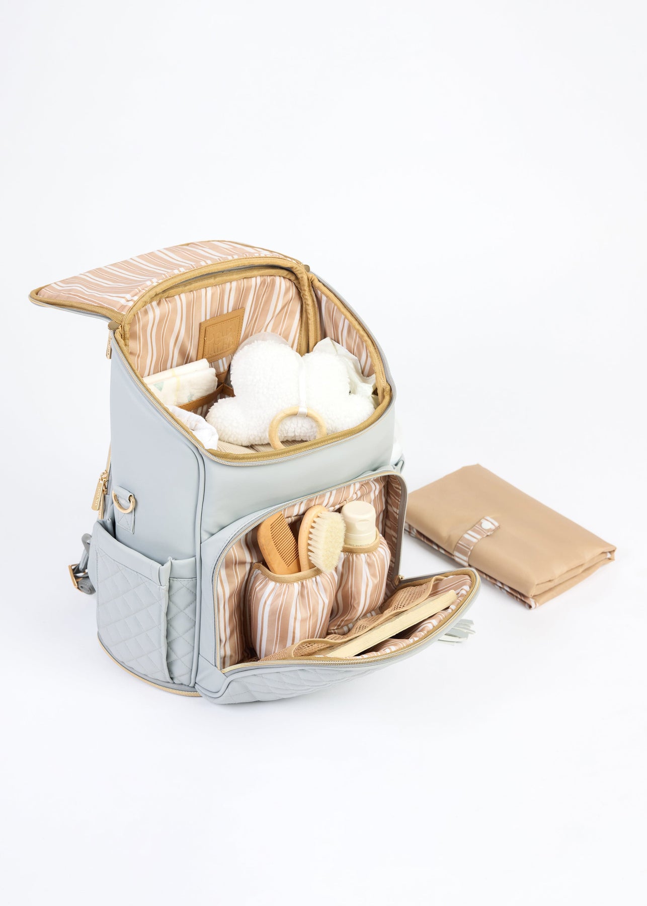 • يحتوي الجيب الأمامي المزود بسحّاب على جيوب معزولة لوضع زجاجات الحليب.
