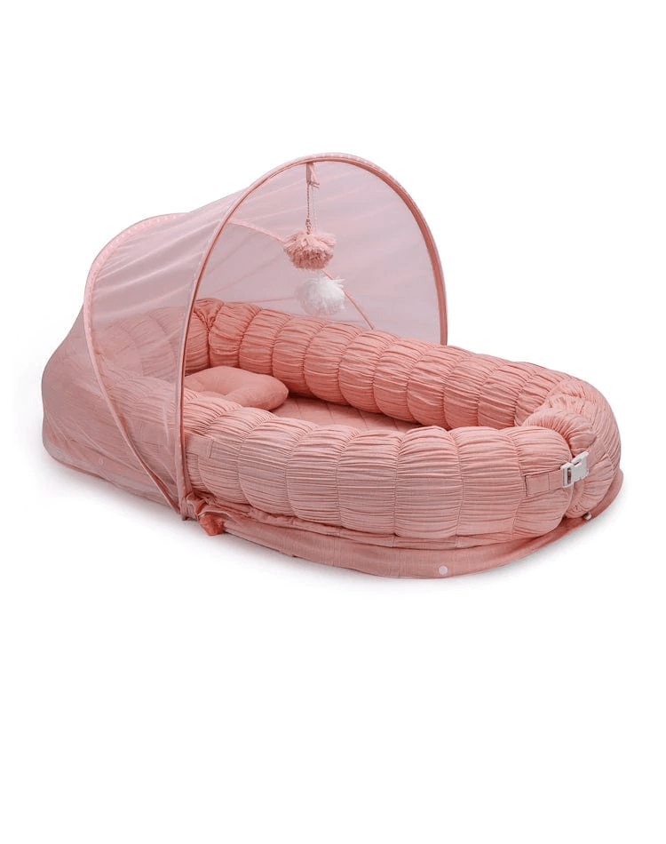 سحابة النوم - عالم ناعم وخفيف الوزن لعامك الأول مع طفلك. مصنوع من أجود أنواع الشاش القطني العضوي ومطوي بشكل مثالي بنمطنا المميز. متوفر بستة ألوان مهدئة، البيئة الناعمة والمحددة والمزخرفة لسحابة النوم تجعل المكان المثالي للطفل للنوم والقيلولة والحلم والاسترخاء واللعب. شبكة البعوض المدمجة تحمي طفلك في جميع الأوقات وغطاء التول ثنائي اللون الخاص بنا يضمن انشغال الطفل بينما تسرق تلك اللحظات الثمينة لنفسك.