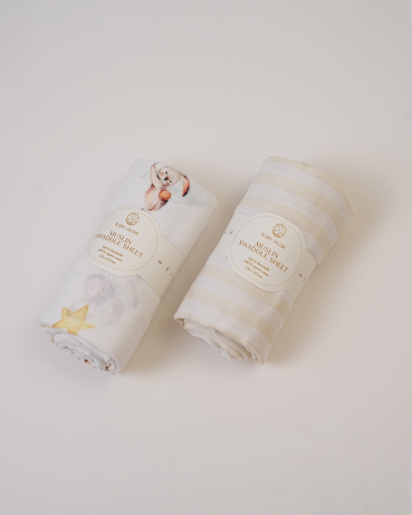 قماطات موسلين عضوية ناعمة وجيدة التهوية، مثالية للاستخدام منذ اليوم الأول.